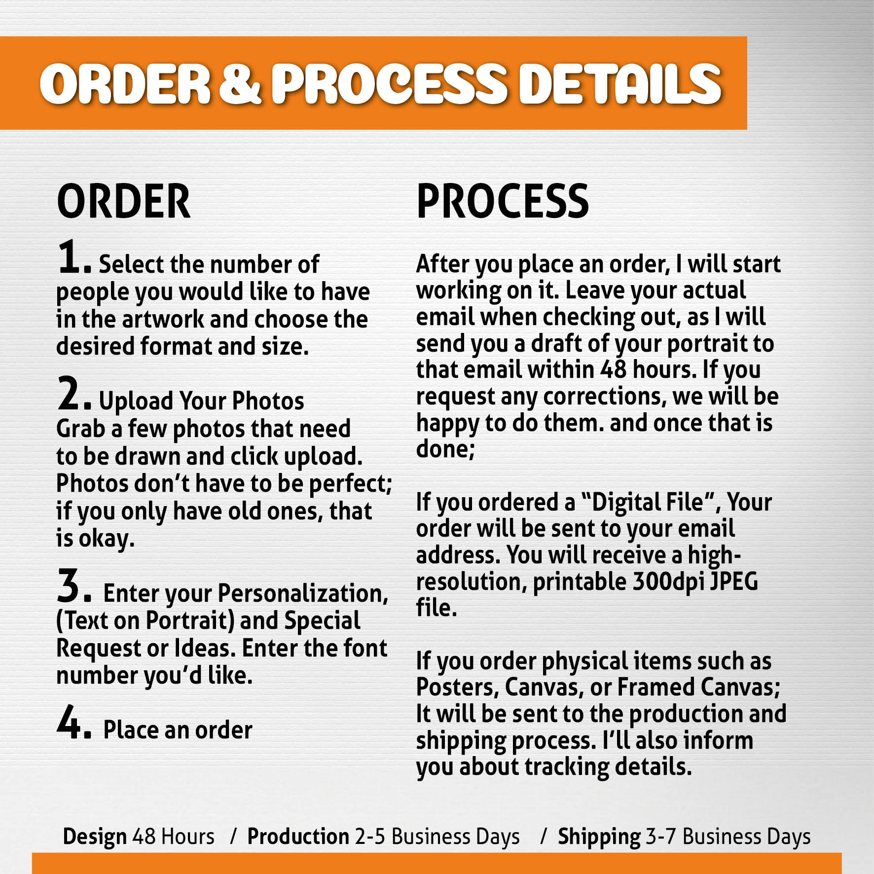 After you place an order, I will start working on it. Leave your actual email when checking out, as I will send you a draft of your portrait to that email within 48 hours. If you request any corrections, we will be happy to do them. and once that is done;
