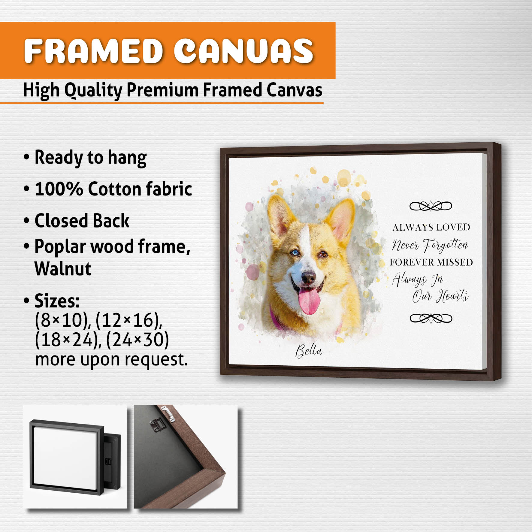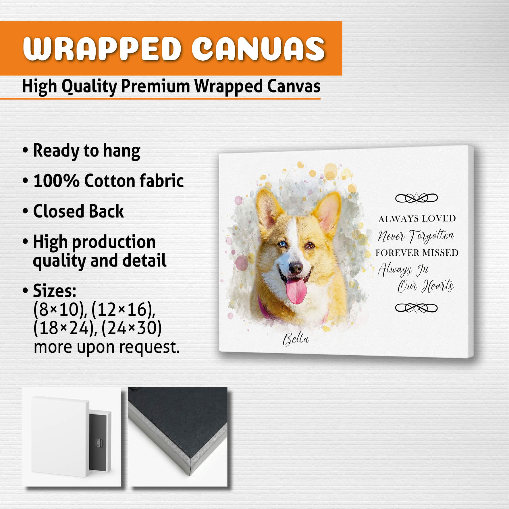 Discover solace and cherish the memory of your cherished canine with our exclusive "Pet Loss Memorial Portrait" collection. Each artwork is a poignant blend of personalized dog portraits adorned with delicate angel wings, capturing the essence of your furry friend's enduring spirit. Whether you choose a canvas, poster, framed canvas, or a digital file, our skilled artists meticulously craft each piece. Our collection serves as the perfect Pet Memorial Gift, offering Pet Memorial Frames, and providing solace through every stroke. Express your love and commemorate your pet with our specialized Pet Loss paintings and frames, turning a Dog Passing into a heartfelt Dog Loss Portrait. These Custom Dog Portraits are not just art; they are a tribute to the joy and companionship your canine brought into your life. Find comfort in our Dog Loss Gifts, preserving the memory of your Dog Passed Away, with a personalized touch that celebrates the unique bond you shared. Explore our "Memorial Dog Portrait" collection and let us create a timeless memorial for your beloved four-legged friend.